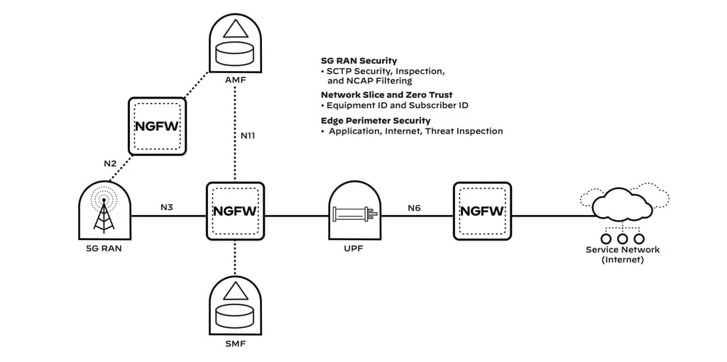 Network slicing enables the multiplexing of virtualized and independent logical networks on the same physical network infrastructure. Each network slice is an isolated end-to-end network tailored to fulfill diverse requirements requested by a particular application. Acting as a segmentation gateway, our NGFW implements granular security specific to each network slice, ensuring security, speed, performance, low latency, and delivery for high-priority traffic. Implementing security policies per network slice allows for microsegmentation of 5G traffic. A testament to its quality, our NGFW meets the National Institute of Standards and Technology (NIST) requirements for a policy enforcement point (PEP) specified in Special Publication 800-207.¹
